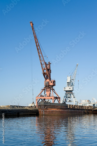 © Alexander, Fototapeta premium wharf with hoisting cranes