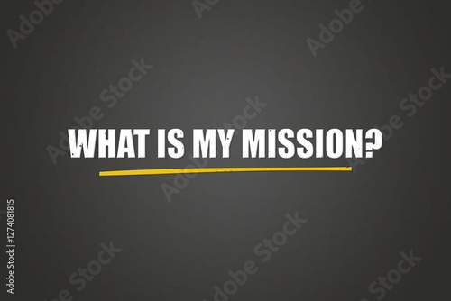 Obraz premium What is my Mission. A blackboard with white text. Illustration with grunge text style.