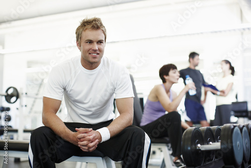 Obraz premium What next.... Cropped shot of a handsome young man sitting in the gym.
