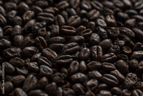 Naklejka premium Wheat black for alcohol production. Roasted wheat macro background. Depth of...