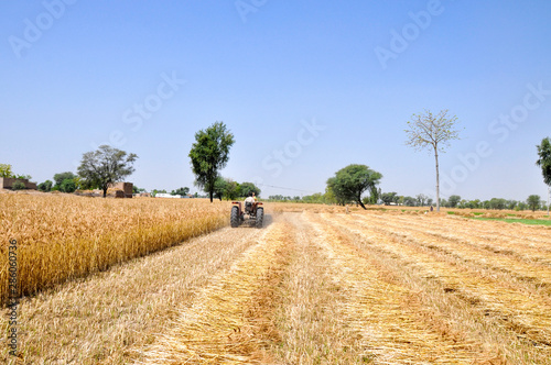 © Hussain, Fototapeta premium Wheat crop harvesting with the Tractor