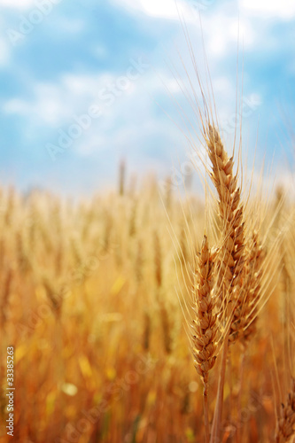 © Elena Schweitzer, Naklejka premium Wheat field against the blue sky