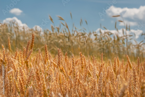 © Vitaliy, Fototapeta premium Wheat field against the sky and clouds