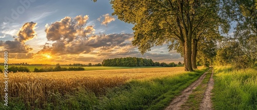 © Achmad Khoeron, Naklejka premium Wheat field along old oak track