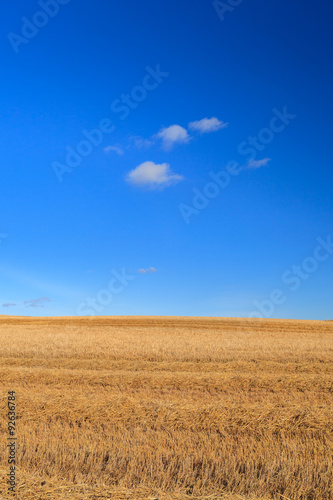 © bomboman, Obraz premium Wheat field and blue sky with clouds