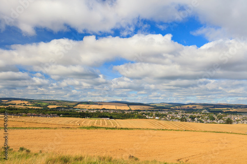© bomboman, Fototapeta premium Wheat field and blue sky with clouds at shore line