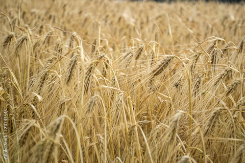 Fototapeta premium Wheat field at summer. Close up. Wheat background.