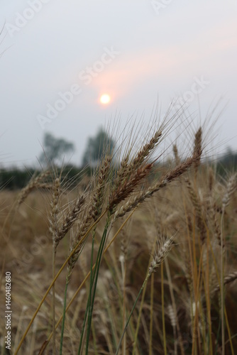 © MahmudulHassan, Fototapeta premium Wheat Field at Sunrise or Sunset with Golden Ripe Crops during Harvesting Season