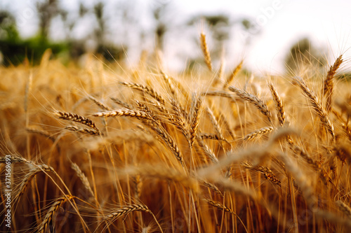 Fototapeta premium Wheat field at sunset. Field landscape.