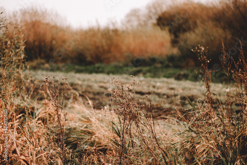 © Марина Шемедюк, Obraz premium Wheat field. Ears of golden wheat. Beautiful nature sunset landscape. Rural scenery under shining sunlight. Background of ripening ears of wheat field. Rich harvest concept.