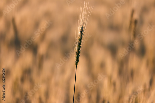 © Dinesh, Fototapeta premium wheat field in spring, beautiful landscape, green grass and blue sky with clouds,golden wheat
