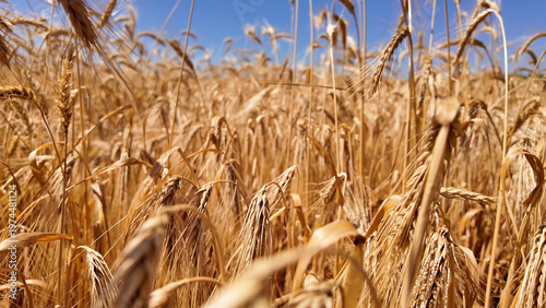 © astrosystem, Fototapeta premium Wheat field in summertime ready for harvesting.