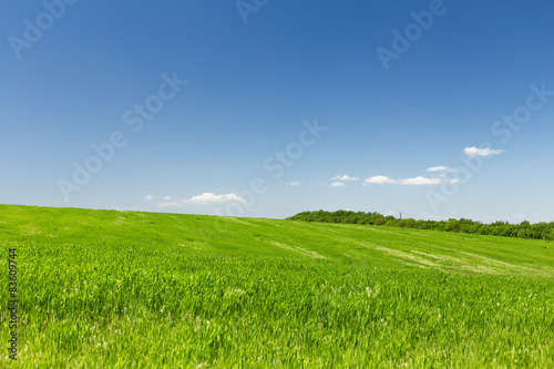 Fototapeta premium Wheat field on a background of the blue sky