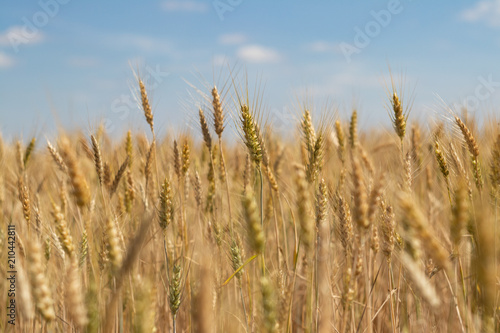 © Volodymyr, Fototapeta premium wheat field on blue sky background