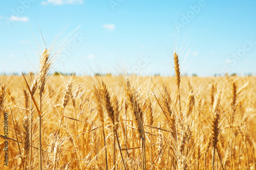 © New Africa, Fototapeta premium Wheat field on sunny day. Cereal farming