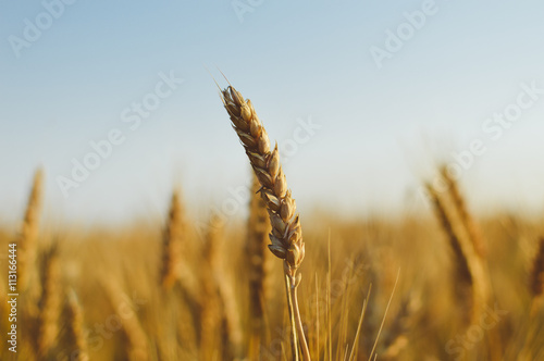 © gorosi, Fototapeta premium Wheat field on the sunset background