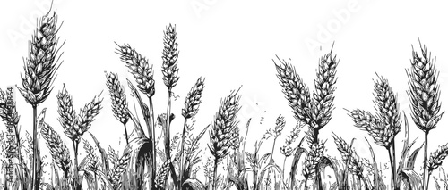 © cac_tus, Obraz premium Wheat field sketch, hand drawn style with detailed ears and stems. Vector illustration