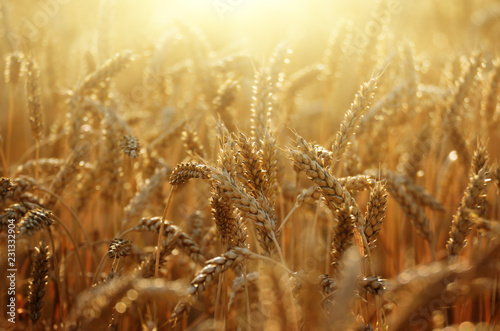 © Mikhailov Studio, Fototapeta premium Wheat field under cloudy blue sky in Ukraine