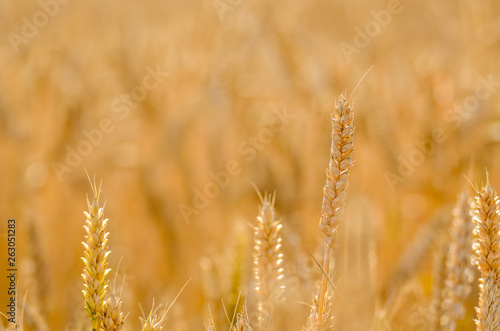 © Mikhailov Studio, Fototapeta premium Wheat field under cloudy blue sky in Ukraine