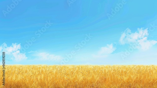 Fototapeta premium Wheat field with blue sky and copy space
