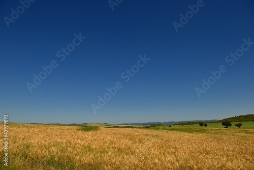 © .shock, Fototapeta premium wheat field with blue sky in background