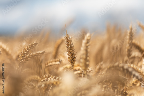 Fototapeta premium Wheat field with golden ears in soft natural light