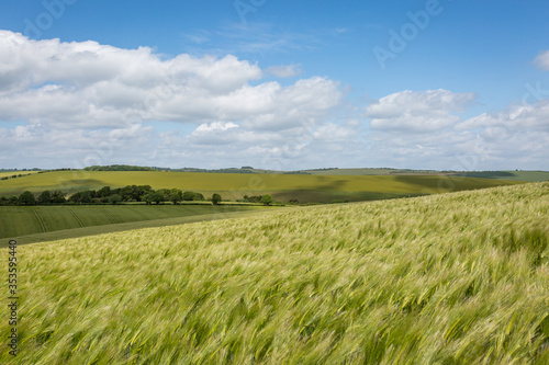 Obraz premium Wheat fields in the South Downs, on a sunny day