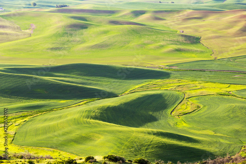 © Yü Lan, Fototapeta premium Wheat fields on rolling hills in morning hours at Palouse, Washington state, USA
