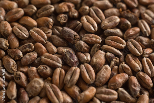 Naklejka premium Wheat for alcohol production. Wheat background. Top view, flat lay