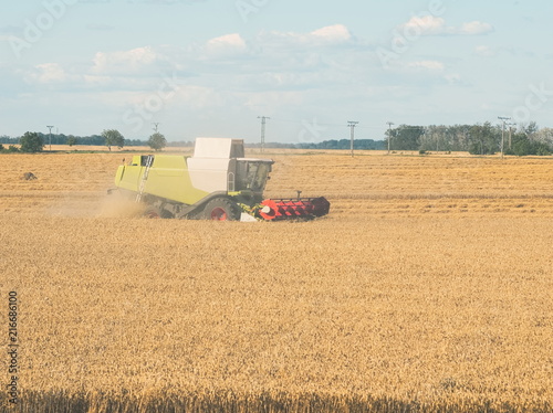 Fototapeta premium Wheat Harvesting with Combine Harvester