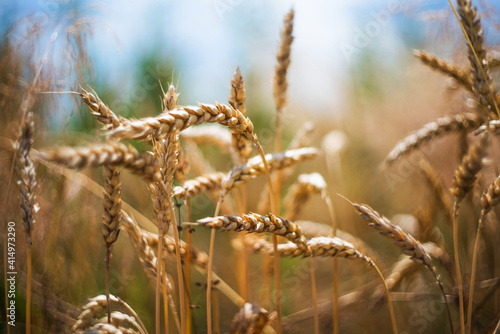 © baxys, Fototapeta premium Wheat in the field. Close-up. Selective focus. Blurred background.