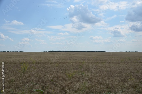 © camerist65, Obraz premium Wheat rye summer field visible clouds and sky