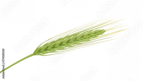 Naklejka premium Wheat spikelet in green, grain branch, seasonal change