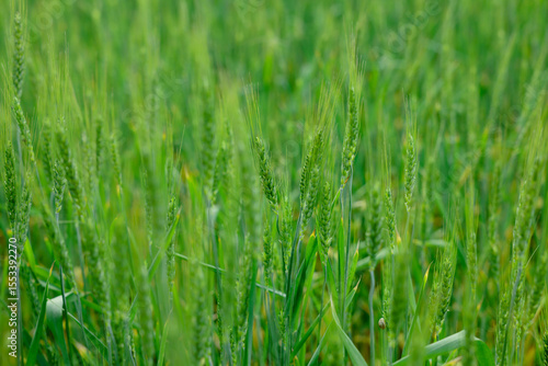 Obraz premium Wheat spikes growing in field outdoors, closeup