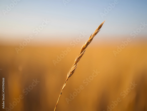 © Maik, Fototapeta premium Wheat Stalk Glowing in Golden Sunset Field