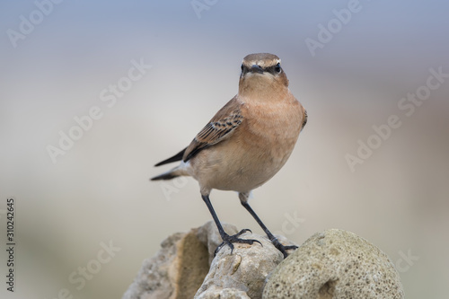 Fototapeta premium Wheatear Perched on Rock