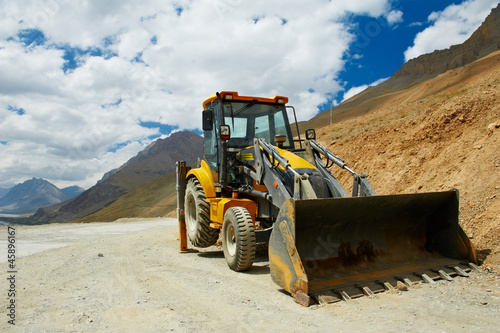 © Kadmy, Obraz premium wheel loader excavator at mountains work