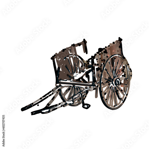 © Afifudin, Fototapeta premium wheelbarrow color sketch with transparent background