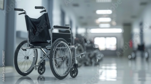 © hanafi 99d, Fototapeta premium Wheelchair in Hospital Corridor