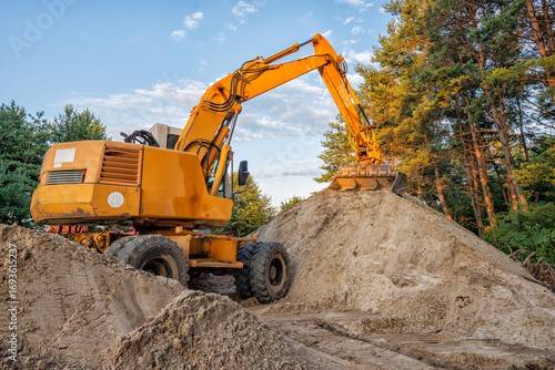 Obraz premium Wheeled excavator working on construction site