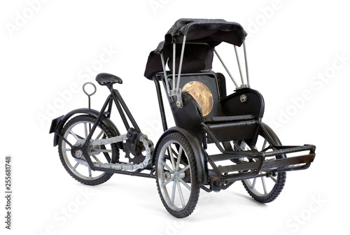 Fototapeta premium Wheeler tricycle taxi, Tricycles small-sized, Vintage model isolated on a white background. This has clipping path.