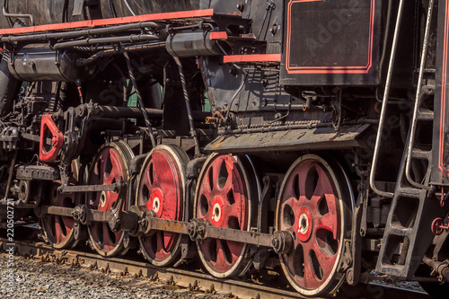 Obraz premium Wheels of old steam locomotive.