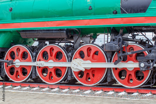 Naklejka premium wheelset, wheels of old steam locomotives. a pair of wheels. retro locomotives. vintage