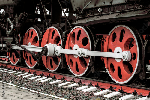 Naklejka premium wheelset, wheels of old steam locomotives. a pair of wheels. retro locomotives. vintage