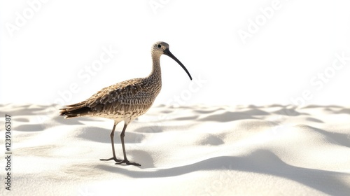 Obraz premium Whimbrel bird on sandy beach, sunny day, wildlife, nature
