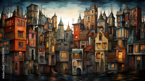 © Vicky, Fototapeta premium Whimsical and Colorful Old Town with Vibrant Architecture