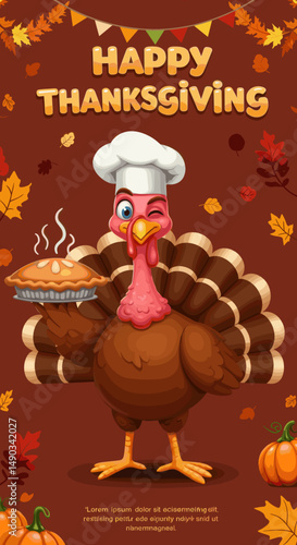 © cleo pick Art, Fototapeta premium Whimsical autumn elements like pumpkins, leaves, and turkeys bring Thanksgiving vibes to life.