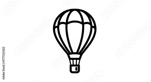 © Tujuenam, Obraz premium Whimsical balloon silhouette against a stark black canvas evokes dreamy adventures