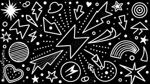 © Shakir, Fototapeta premium Whimsical black silhouette design with stylized shapes and decorative celestial elements on white