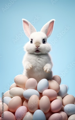 © Ezio Gutzemberg, Fototapeta premium Whimsical bunny surrounded by flowers and Easter joy